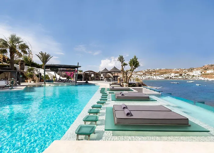La posizione dell'hotel è strategica, a soli 10 minuti di auto dalla vivace città di Mykonos, nota per la sua vita notturna, ristoranti, negozi e luoghi di interesse come Little Venice e i Mulini a vento. Inoltre, Kivotos ha una spiaggia privata per uso esclusivo degli ospiti dell'hotel, con viste sulla baia e atmosfera di serenità impareggiabile.